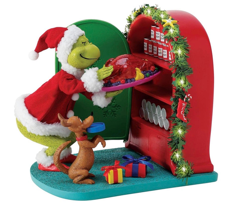 Grinch is cleaning out the icebox of the whole holiday feast. He is even taking the roast beast!