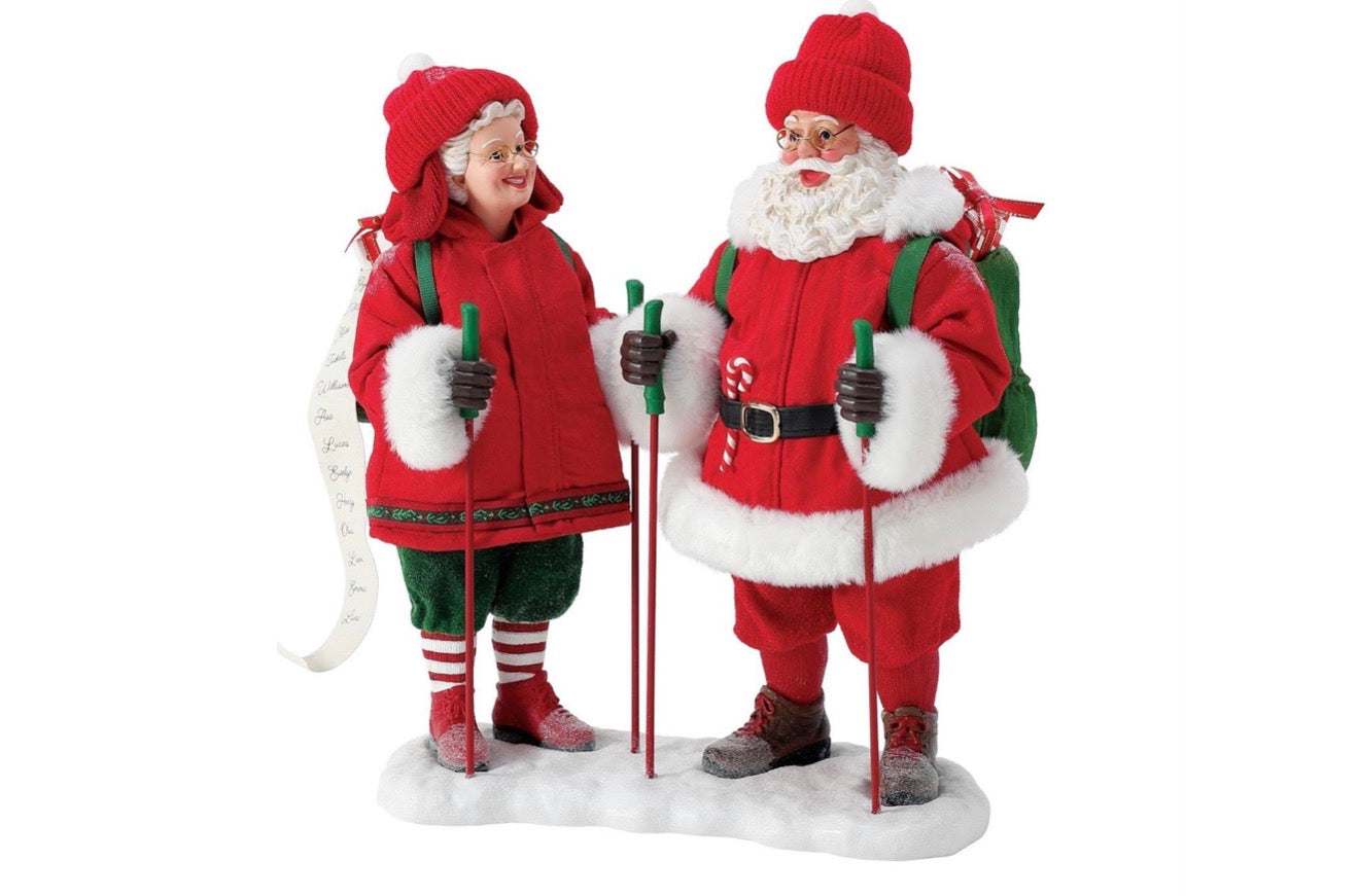 Mr. and Mrs. Claus are stretching their legs on a winter hike after being cooped up all day in the cabin. There is nothing like the fresh crisp air to put a spring in your step!