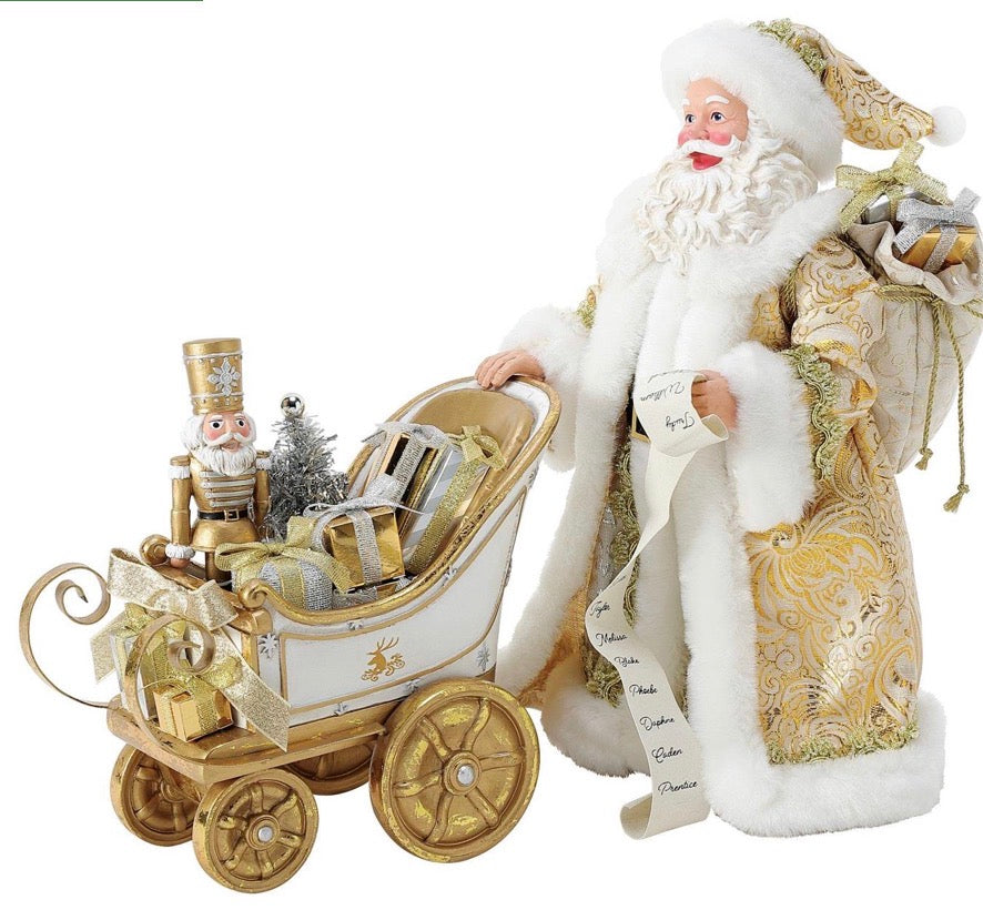 When Santa wants to pull out all of the stops and have a GRAND entrance, he loads up his best gold sleigh and fills it with shiny wrapped gifts in pure gold tones. This two-piece Possible Dreams Clothtique collectible is precious.
