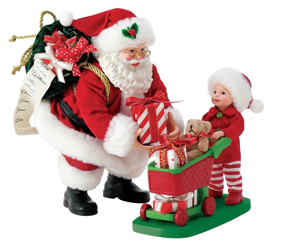 Santa has a little helper and this one is extra cute. It looks like she is an expert when it comes to filling up the shopping cart with toys and goodies wrapped and ready. She has this cart filled to the top with holiday fun.