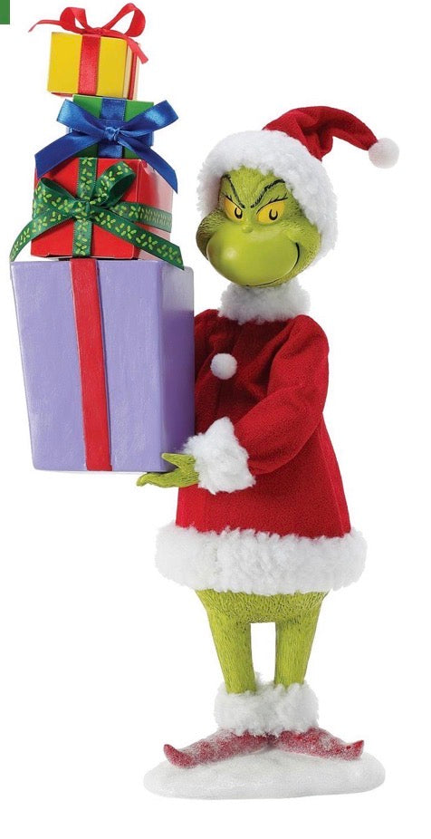 No one stacks up the Christmas fun like the Grinch. The fun is even larger with this 14 high Possible Dreams licensed collectible figurine.