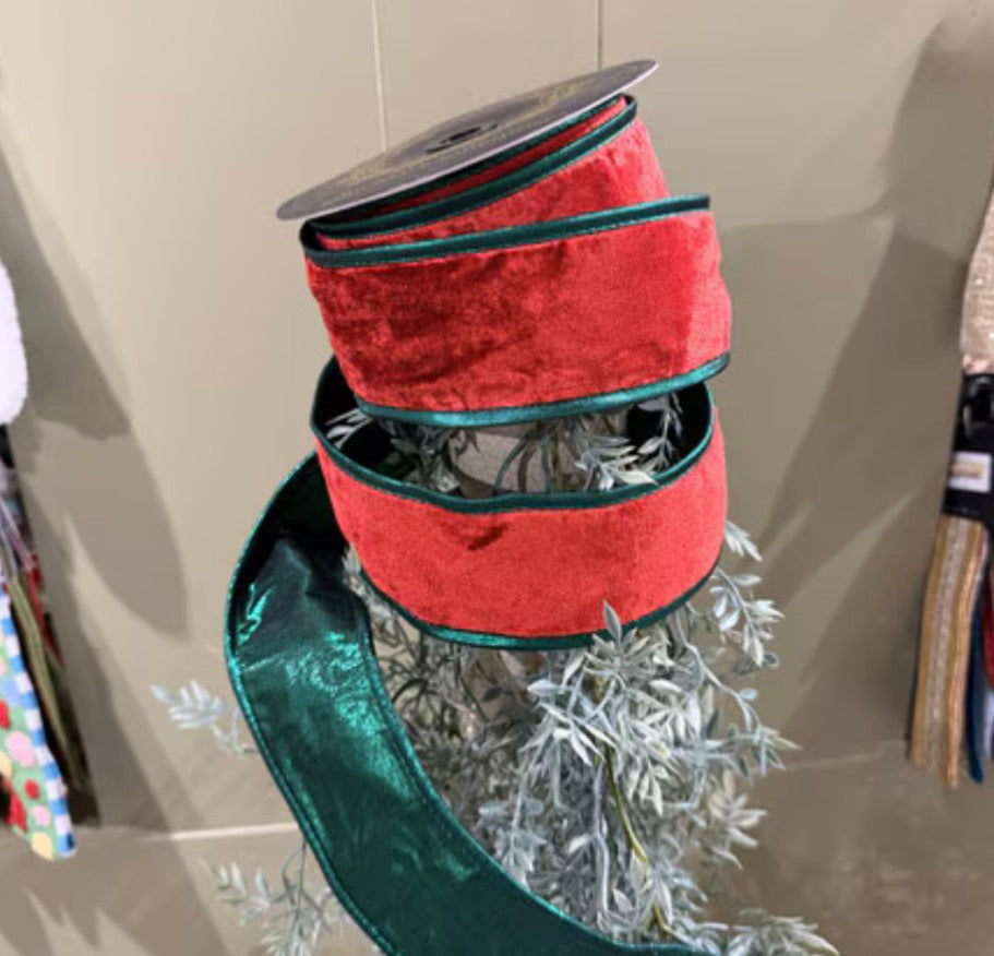 Red Velvet ribbon with Green trim
