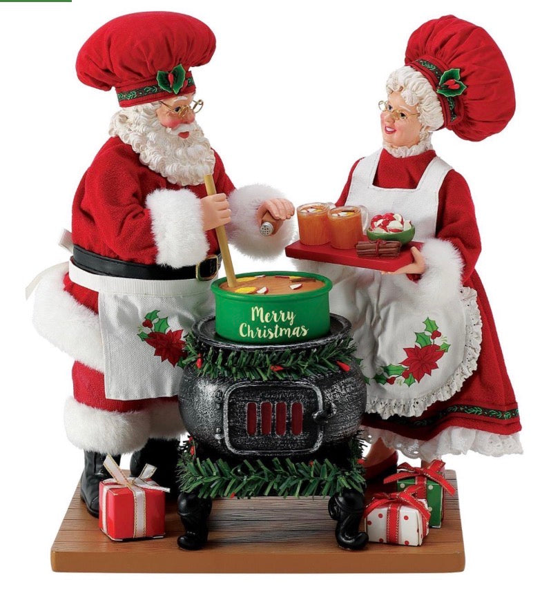 Working together Mr. and Mrs. Claus create the perfect warm holiday beverage. The secret to this cozy fall drink is cinnamon, allspice and a dash of nutmeg.