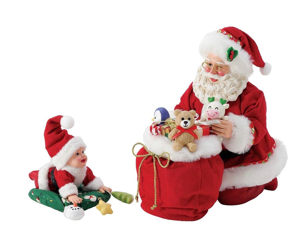 Pediatric doctors and Santa highly recommend babies get in some tummy time daily. Just because it's the busy holiday season doesn't mean infants won't love to be down on the floor checking out Santa's bag of goodies.
